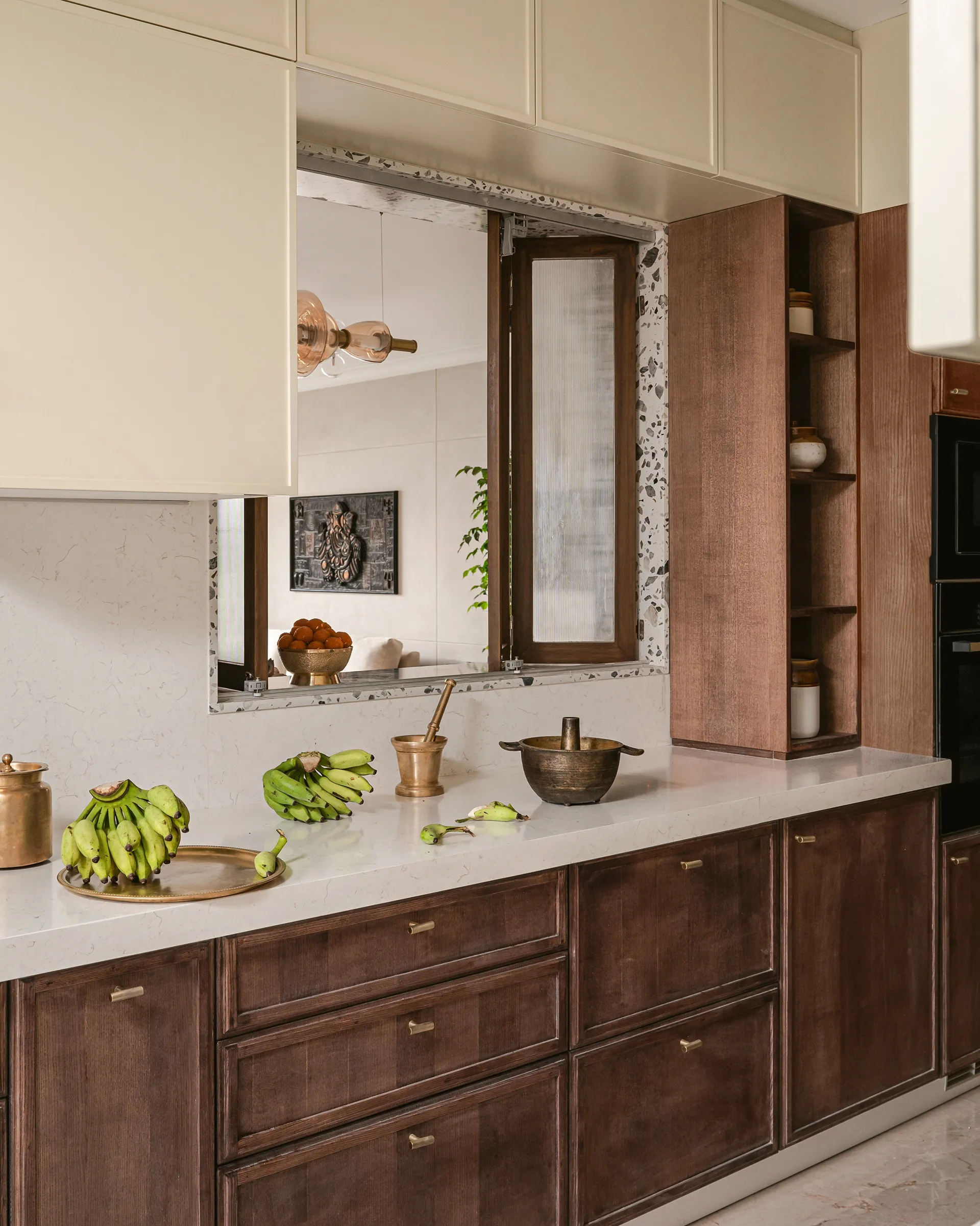Prana is not just a home, it’s a living, breathing manifestation of heritage, culture, and contemporary elegance, designed by the visionary Rohini Bagla, Founder and Principal Designer of Studio Rohini Bagla. The project takes its inspiration from the deep-rooted traditions of South India, weaving them seamlessly with fresh, modern sensibilities to create a space that is both timeless and ever-evolving. The 3BHK was designed for a South Indian family who sought a home that feels like an embrace—rich in tradition, yet alive with contemporary energy. The result is a home that speaks the language of family, culture, and modern living in perfect harmony.